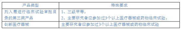 4、《醫(yī)療器械臨床試驗(yàn)機(jī)構(gòu)條件和備案管理辦法》規(guī)定備案條件,明確了醫(yī)療機(jī)構(gòu)備案應(yīng)當(dāng)具備的條件等相關(guān)要求;為了加強(qiáng)對(duì)高風(fēng)險(xiǎn)醫(yī)療器械管理,保證受試者安全和提高臨床試驗(yàn)質(zhì)量,規(guī)定對(duì)列入需進(jìn)行臨床試驗(yàn)審批目錄的第三類產(chǎn)品,應(yīng)當(dāng)在三級(jí)甲等醫(yī)療機(jī)構(gòu)專業(yè)范圍內(nèi)開展臨床試驗(yàn);規(guī)定開展創(chuàng)新醫(yī)療器械產(chǎn)品或需進(jìn)行臨床試驗(yàn)審批的第三類醫(yī)療器械產(chǎn)品臨床試驗(yàn)的主要研究者應(yīng)具有高級(jí)技術(shù)職稱并且參加過3個(gè)以上醫(yī)療器械或藥物臨床試驗(yàn)等等。